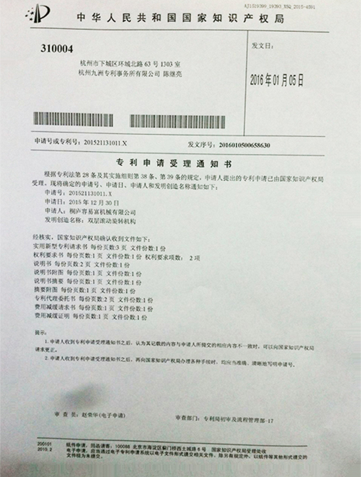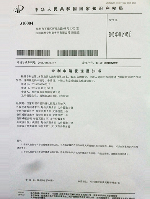 已經(jīng)獲得十多項(xiàng)發(fā)明專(zhuān)利和二十多項(xiàng)實(shí)用新型和外觀專(zhuān)利,所有產(chǎn)品都是經(jīng)過(guò)高精密的設(shè)計(jì)和制造,以確保機(jī)器可以平穩(wěn)的運(yùn)行。